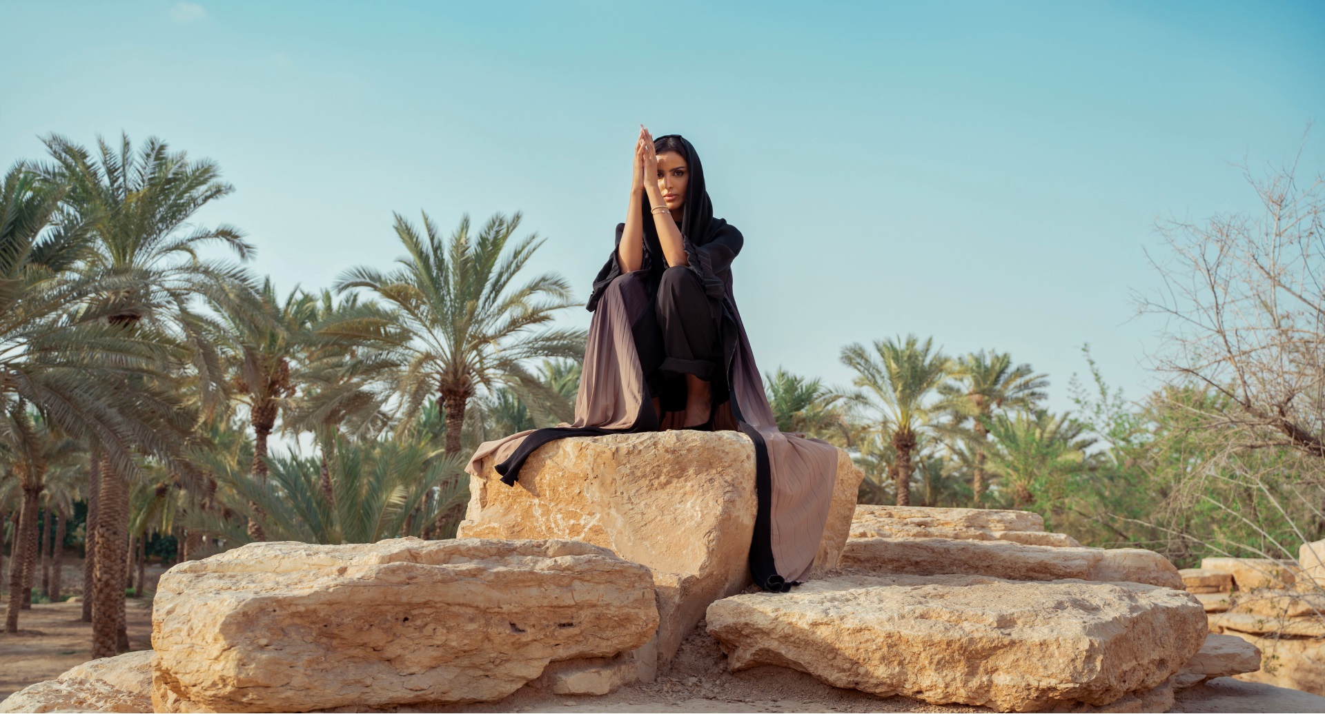 عباية فراشة حرير وشيفون أسود بأكمام منقشة بأشكل دائرية مناسبة للاستخدام اليومي